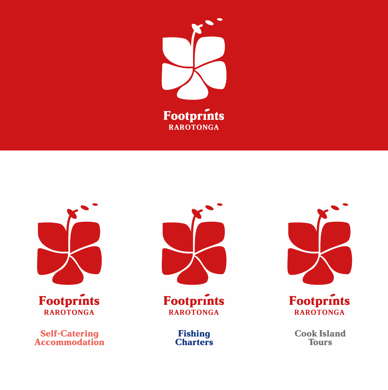 Looking for a bold, bright, tropical flower design. They needed a logo that could be used for their existing self-catering accommodation, and in the future, Fishing Charters and Cook Island Tours.